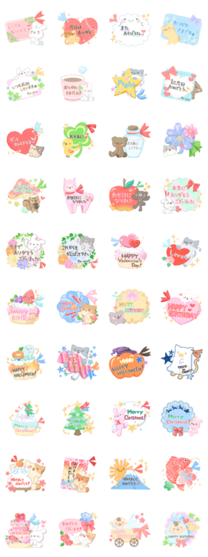 特別な日に、思いを込めたスタンプを贈りませんか?あなたの気持ちがきっといつも以上に伝わるはずです。種類は誕生日やクリスマス、ハロウィン、結婚、出産など様々!まつゆき より発売