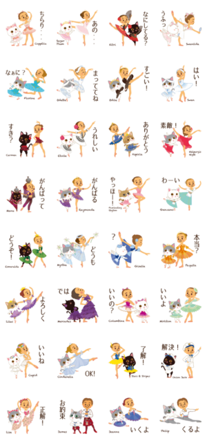 第七弾 バレエちゃんとねこりーなさん 会話 スタンプ画像一覧