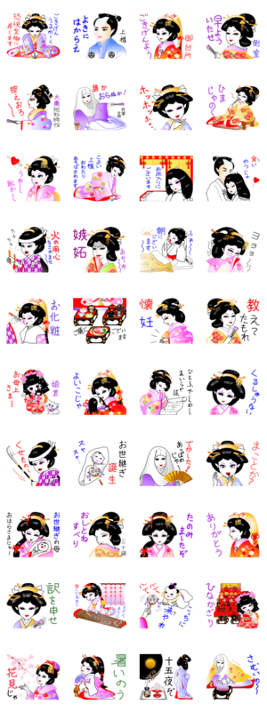 江戸城奥の丸に将軍の妻たちの愛憎と四季。お花見、十五夜、ひな祭りなどのスタンプです。あとりえここ より発売