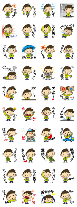 ひゅーが君はカエルのTシャツが大のお気に入り♡普段使う頻度が高いと思われる文字入りのスタンプにしました。satominton より発売