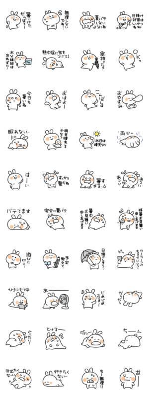 暑い夏を乗り切ろう!だるだるだらだら夏バテぎみのウサギが活躍するスタンプ!日常・ネガティブ・気づかいなど、色々あります!