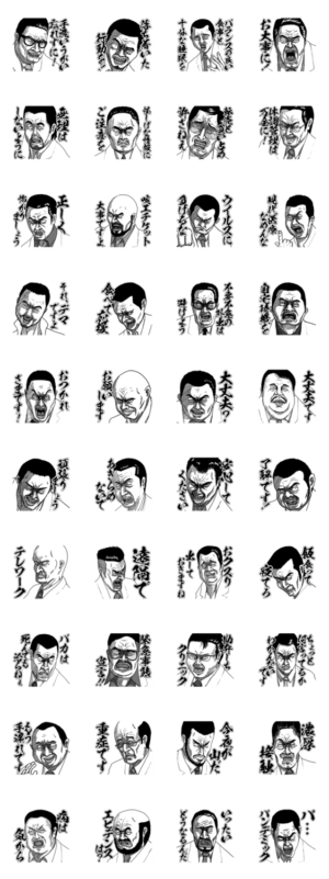 顔がヤクザチンピラ不良っぽいけど言ってる事は優しい気づかいに溢れた劇画変顔の可愛すぎない大人にやさしいお医者さんスタンプです。打倒新型コロナウイルス!Ring Ring Lab より発売