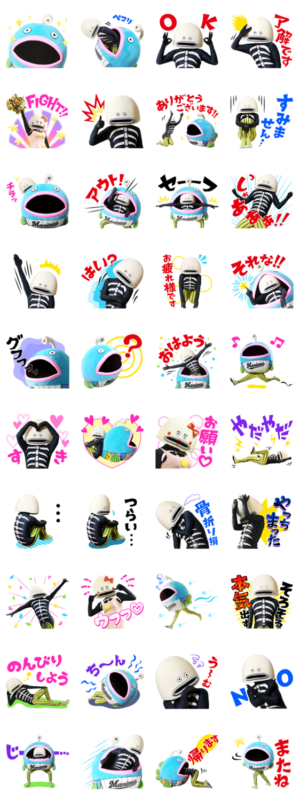 千葉ロッテマリーンズのキャラクター・謎の魚のスタンプが登場!かわいく、そして不気味に(!?)会話を盛り上げます。