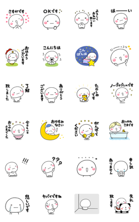 しろまるの動く敬語スタンプです。毎日誰にでも使える内容のみを厳選している無難な白キャ ラです。【作:いしいともこ】