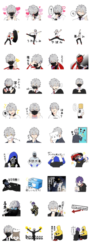 クールな黒マスクがトレードマーク!サバゲー好きな男の子のスタンプ第3弾!かっこいいスーツ姿にもご注目♪日常で使いやすいネタがたくさん♪株式会社DK より発売
