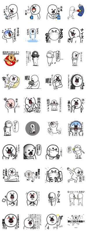 まさに今ぴったりのスタンプ。だんだんと慣れてしまってる感染予防に喝を入れてくれるスタンプ。