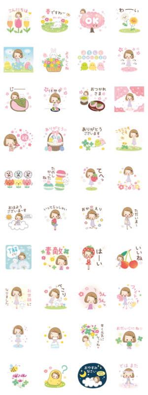 桜やチューリップ、タンポポ、イースター、マカロン、3色だんごに桜餅、いちごやさくらんぼなど、春いっぱい♪のスタンプです!!かりん より発売