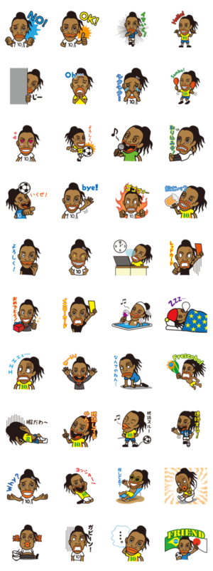 サッカー元ブラジル代表FWのスーパースターロナウジーニョがLINEスタンプに登場!日本人にも使いやすい表情が盛りだくさん。既読スル~スタンプは必見(笑)
