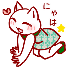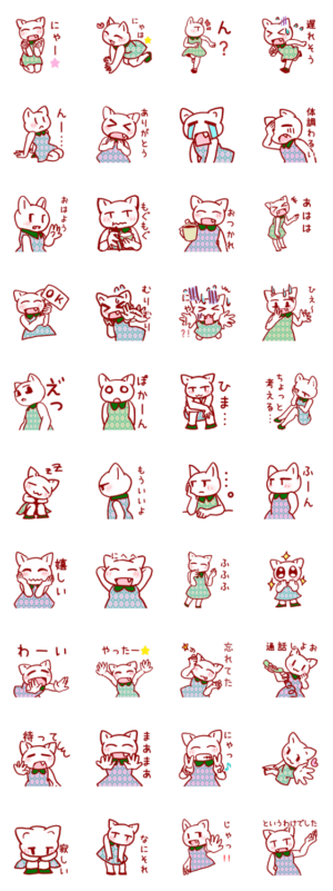 ワンピースを着た、かわいいねこのスタンプです。うーたん より発売