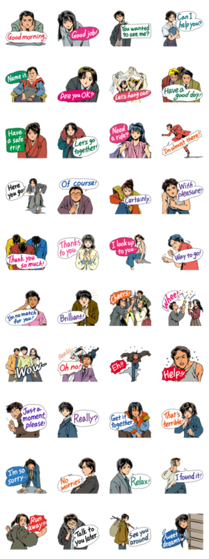 人々19のスタンプ、英語版です。日本語版とは異なる言葉を使用しています。(イラストはほぼ同じです。)河村ミリ より発売