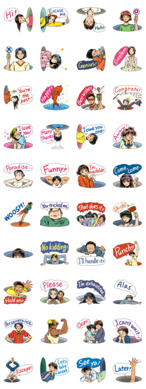 人々のスタンプひょこっと編の英語版です。日本語版とは異なる言葉を使用しているものもあります。(イラストはほぼ同じです。)