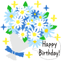 「おめでとうございます」多め。おしゃれな花束や花柄、植物のナチュラルテイストで絵本みたいな絵のグリーティングスタンプ。季節の挨拶もある大人可愛いお洒落な贈り物。Y.Toyama より発売