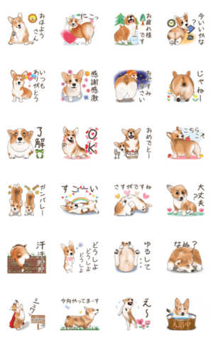 可愛いお尻をフリフリ!元気なコーギー犬のスタンプです!Masajii より発売