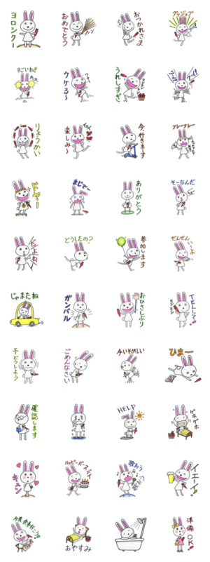 手描きのうさぎのぴょんこりーなのスタンプです。手足が長くてかわいい♡