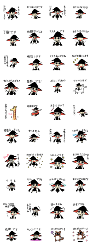 魔法使いの女の子ルーコ。上司や先輩、仕事相手に失礼のないビジネス用スタンプだよ。お友達との大事な話にも使えるね。