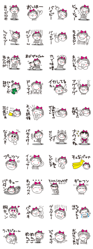 おかっぱとお洋服がストライプのシマ子ちゃんが死語で会話します。かわいく使ってね。キキぷり より発売