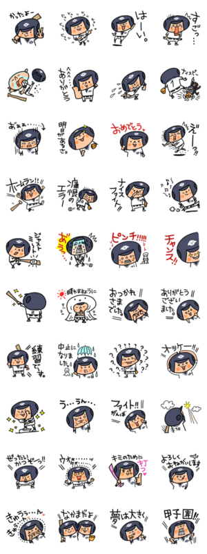 野球、ソフトボール専用スタンプ。クラブチームや部活、草野球、社会人、保護者に使ってほしい、応援スタンプ。イラストレーター&デザイナー【tun】スタンプ第38弾tun より発売