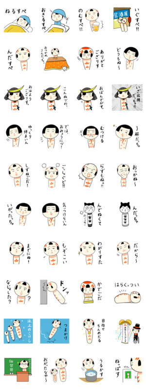 仙台弁こけしスタンプ第4弾!今回はスペシャルだすぺ。ばんばん使って楽しんでけさいん!jugo より発売