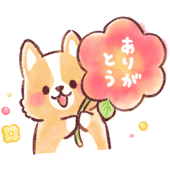 まるまるコーギーがふんわり優しい水彩タッチになりました!絵本のようなかわいい手描き風デザインで癒されるスタンプです。つじなつみ より発売