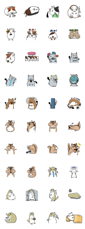 癒し系モルモット、喜怒哀楽が激しいデグー、コミカルなシマリス、ちょっとリアルなリチャードソンジリスを集めたげっ歯類スタンプです。ちいた より発売