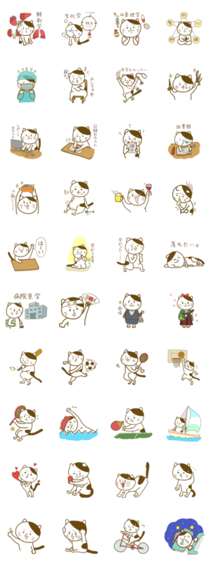 医学生や看護学生など、すべての医療系大学生のための日常会話に便利な猫スタンプです。はやもえ より発売