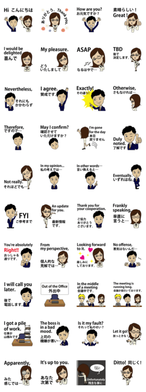 英語をビジネスで使う人のためのスタンプ スタンプ画像一覧