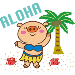 フラダンスの得意なブーコちゃん。楽しくダンスを踊ります。そんなブーコちゃんのかわいいメッセージ。みんなでアロハ!Hideko Tottori より発売