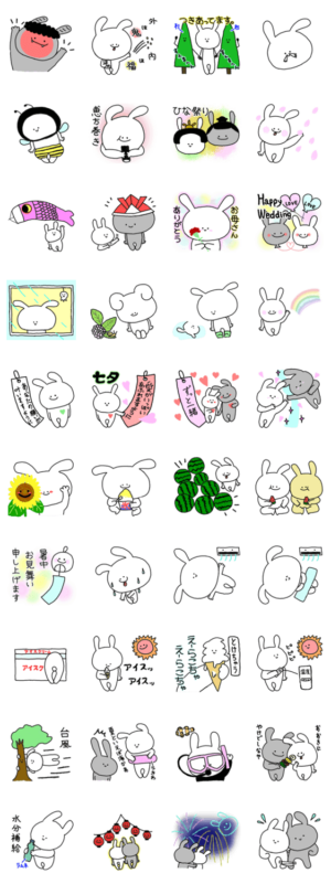 みみたんシリーズから春夏イベントスタンプが登場。節分、ひな祭り、お花見、こどもの日、母の日、梅雨、結婚、七夕、夏休み、花火など。