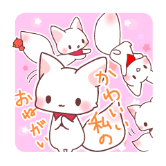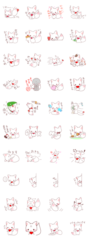 かわいい白狐(きつね)さんとついてる子鬼くんの日常的に使えるスタンプです。ILOHACO より発売