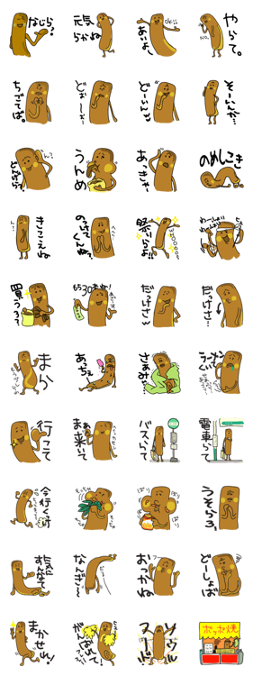 新潟のご当地名物 屋台の定番ぽっぽ焼きのぽっぽさん。新潟の方言スタンプです。餅福 より発売