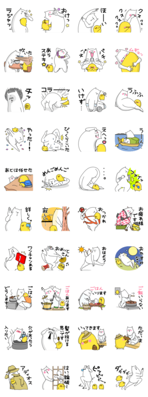 犬ねこくま?人型動物1ver2.文字入り脱力シュールゆるい手描き日常会話にあいさつ返事ネタ等。家族連絡やママにも。ひよこ付煙たさ3割増。イラストレーター【ちぎらみお】ちぎらみお より発売