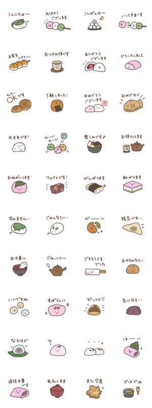 いろんな和菓子のゆるっとしたスタンプです。お団子、大福、桜餅などなど。はたこ より発売