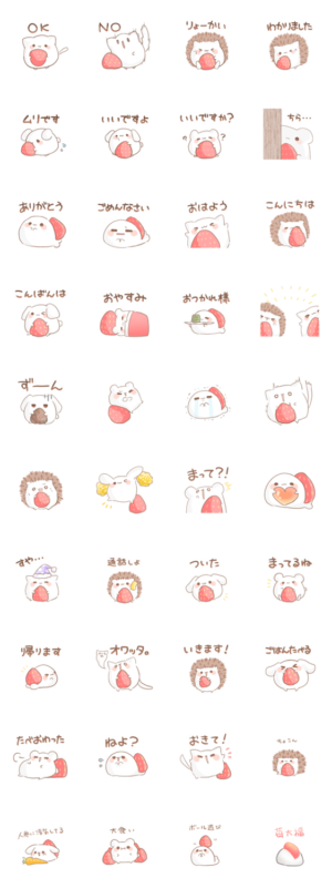 苺大福のあにまる達のほんわか日常スタンプです!いろんな場面に使いやすいです( *´꒳`* )/しろねこ/はりねずみ/うさぎ/しろくま/