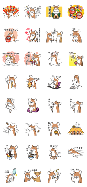 ねずみが年末年始の挨拶したり、おソバ食べたりうどん食べたりしています。寒中見舞いもあるよ。GODY より発売