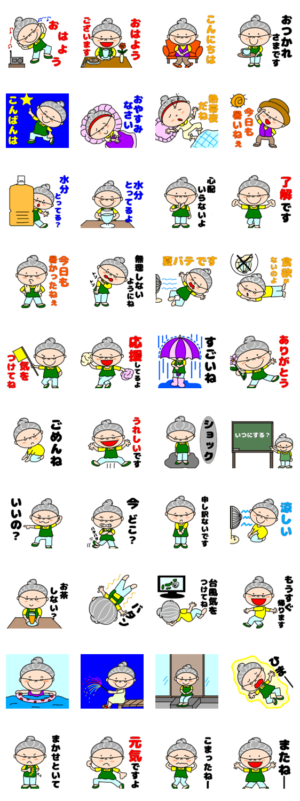 優しい梅おばあちゃんの夏バージョンです。夏に使える言葉や日常で便利に使える言葉です。ゆずっ子 より発売