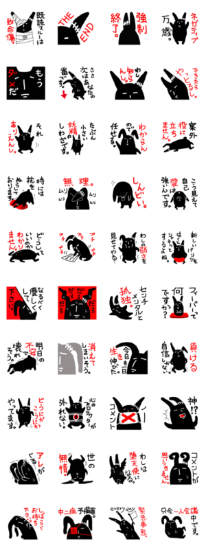 ネガティブな黒うさぎ、ブラビットさんの、日常スタンプです。Let\'s ネガティブライフ!!南城光 より発売