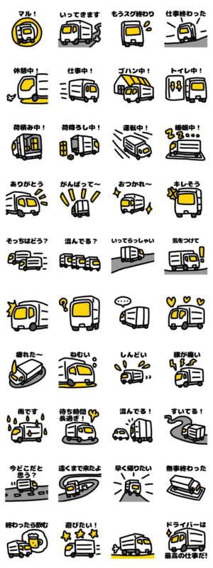 トラックドライバーさんのためのスタンプです。大型トラック、中型トラック、長距離トラック、宅配、車の仕事に携わる方、ぜひ使ってみてください。