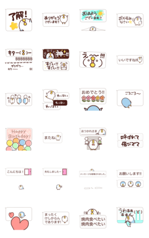 あのとり。の見やすいデカ文字・吹き出しスタンプです! 定番の挨拶や使いやすいリアクションなど、あのとり。が楽しく会話を盛り上げます!( ・8・ ) (作:ダーシオ)