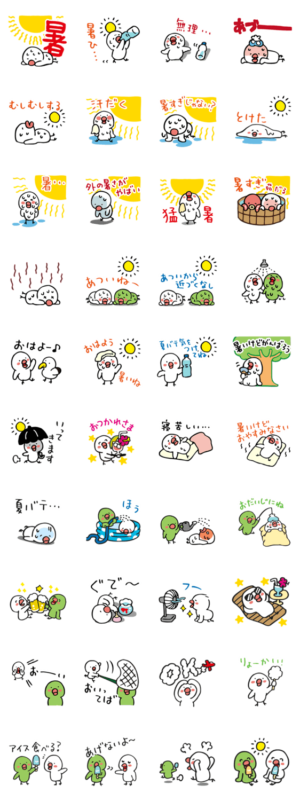 とにかく暑い日、あつい夏の日、猛暑の日に使えるスタンプです!白ひよこのひよやんシリーズ第8段♪うらら より発売