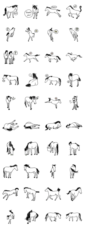 はしっこの島で暮らす馬たちの様子をスタンプにしました。河田桟 より発売