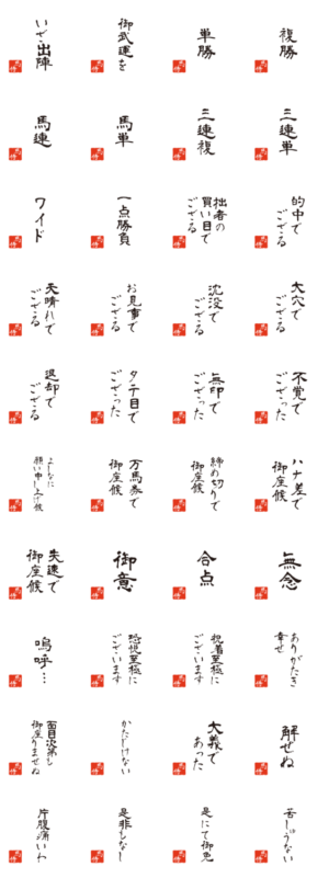 競馬で使う武士言葉のスタンプのダウンロードはこちら↓