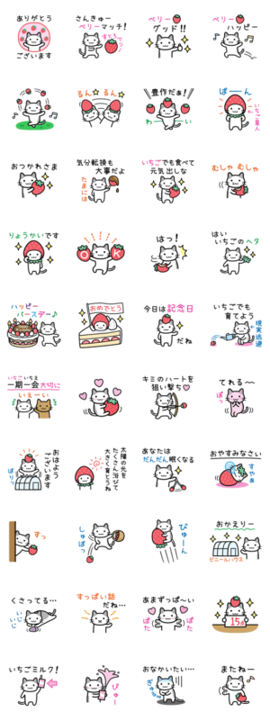 いちごが大好きなねこです。いちごを食べると元気になります。hikida より発売