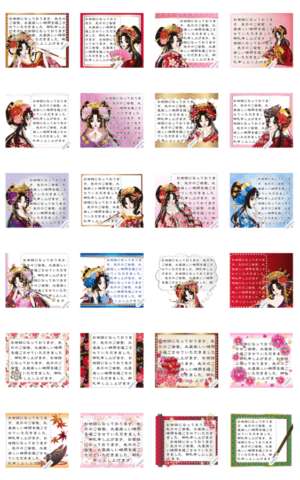 美少女図鑑。花魁編がメッセージスタンプになりました!美しい和柄をぜひ堪能してください。 購入後もテキスト変更可能。購入前にプレビューでご確認ください 現在この商品は一部のスマートフォン版LINE 10.3.0以上のトークルームでのみ使用できます。動作環境の最新情報はヘルプをご確認ください。mayurimu より発売