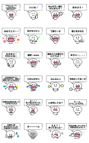 しろいまるおのメッセージスタンプです。様々な表情に文字を自由に設定できます。100文字まで/カスタム/棒人間/モノクロ/ゆるかわ/ふきだし/シンプル/おもち/ 現在この商品は一部のスマートフォン版LINE 10.3.0以上のトークルームでのみ使用できます。動作環境の最新情報はヘルプをご確認ください。イケイケ Artteacher より発売