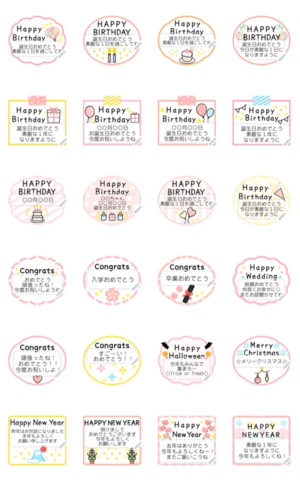 誕生日/合格/入学/卒業/結婚/ハロウィン/クリスマス/お正月...一言添えておめでとうを伝えるイベントお祝いメッセージスタンプ。シンプルでおしゃれかわいい大人女子向け。 現在この商品は一部のスマートフォン版LINE 10.3.0以上のトークルームでのみ使用できます。動作環境の最新情報はヘルプをご確認ください。Whimsy より発売