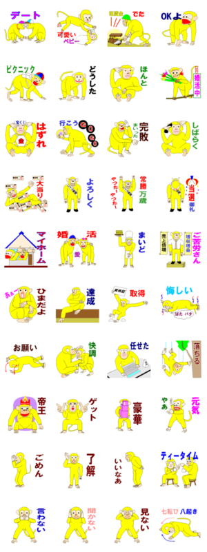 あなたに幸運を呼ぶ黄色いお猿が登場 スタンプ画像一覧