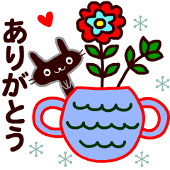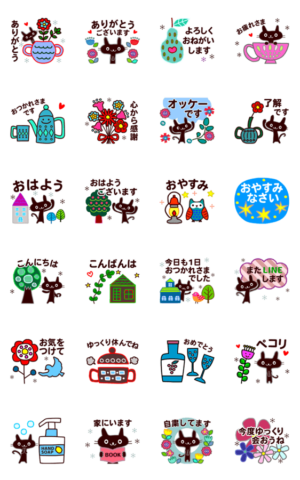 おしゃれかわいい動く北欧ねこ!黒猫の毎日使える挨拶!ハッピー,幸せ,感謝ありがとう!やさしい気遣い,女性向け,大人女子,ガーリー,楽しいクロネコ基本セット!素敵な毎日を♪