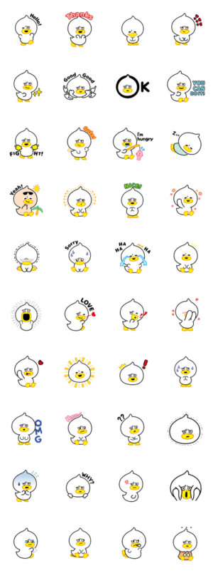 しかめっ面アヒルのうざかわいいスタンプの英語版が、さらに使いやすくなって登場!中身はおっさん?!キュートな顔芸で、相手に気持ちを伝えよう!