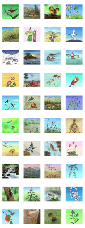 日本の古き懐かしい四季の風景をパソコンのデジタルペンで墨絵風に描いた、前作の続編です。あえて、文字は入れず自由な発想で絵手紙や、文字無し便りとして使って下さい。