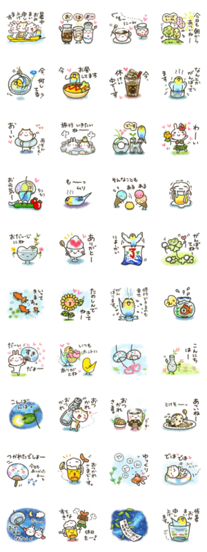 「やさしいスタンプ」シリーズの暑さにやさしい涼しげな夏スタンプです。Honobono より発売